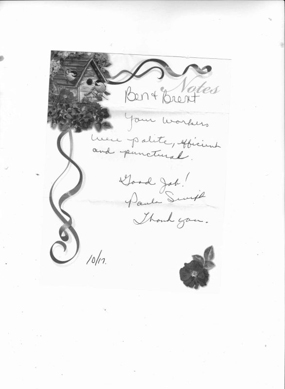I’m sorry to be so late in letting you know how very much I liked and appreciated the good work your company did for me some time ago.